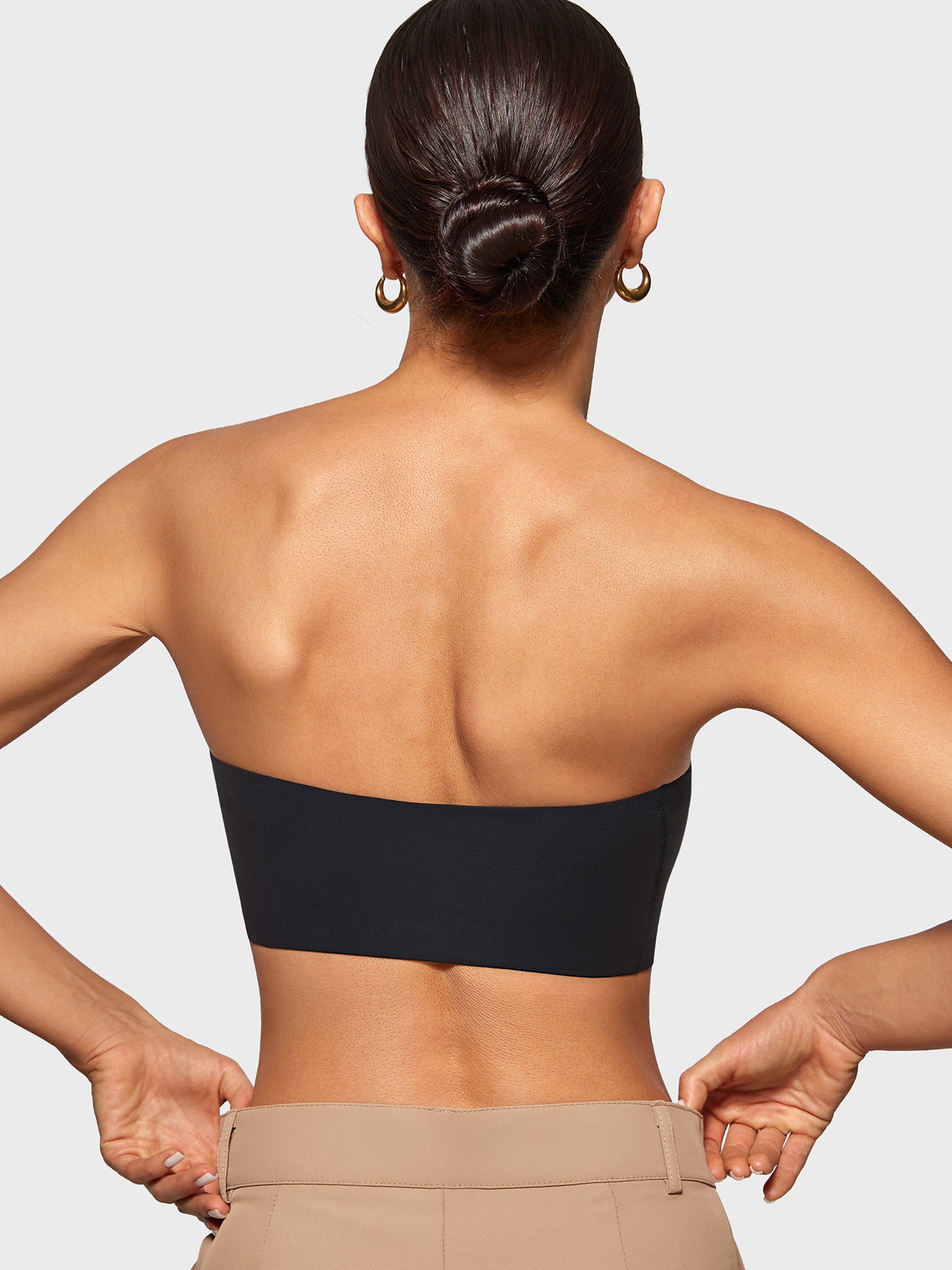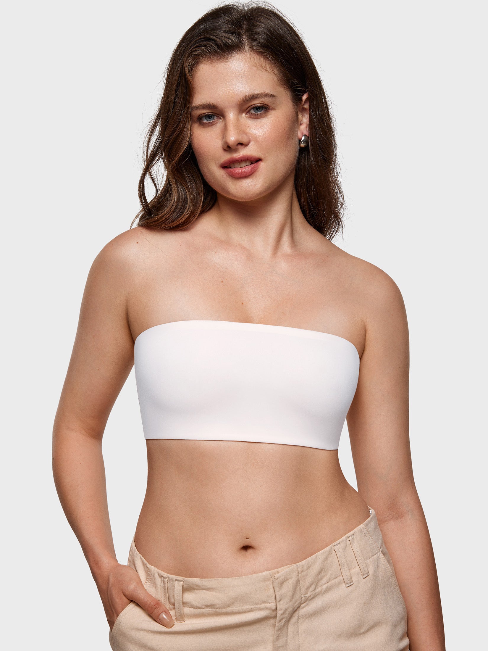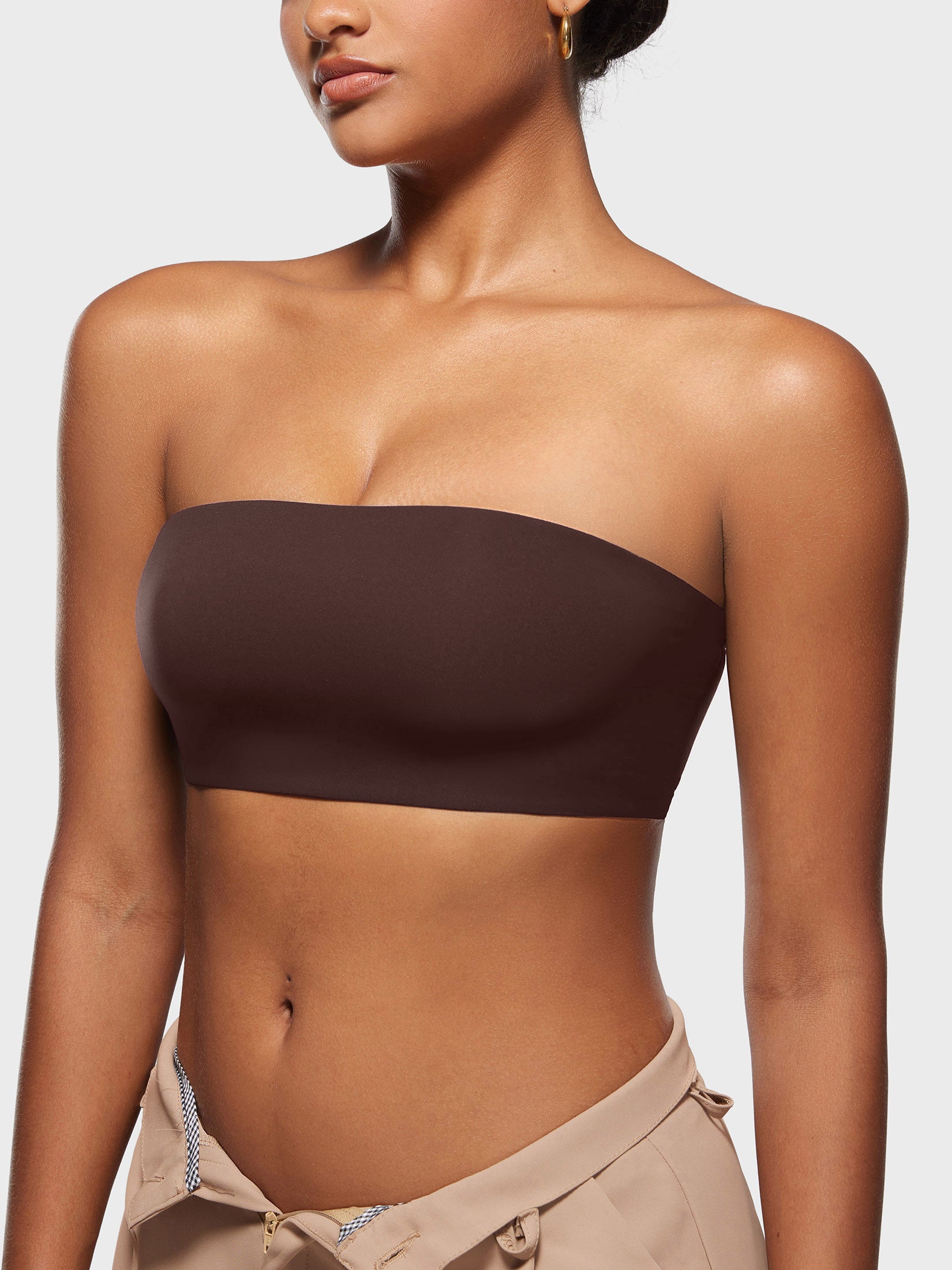 This strapless unlined bras for women is made of three-layered high-stretch fabric that stretch with your body and won't see through,with a mesh layer in the middle designed to provide better support and stability.