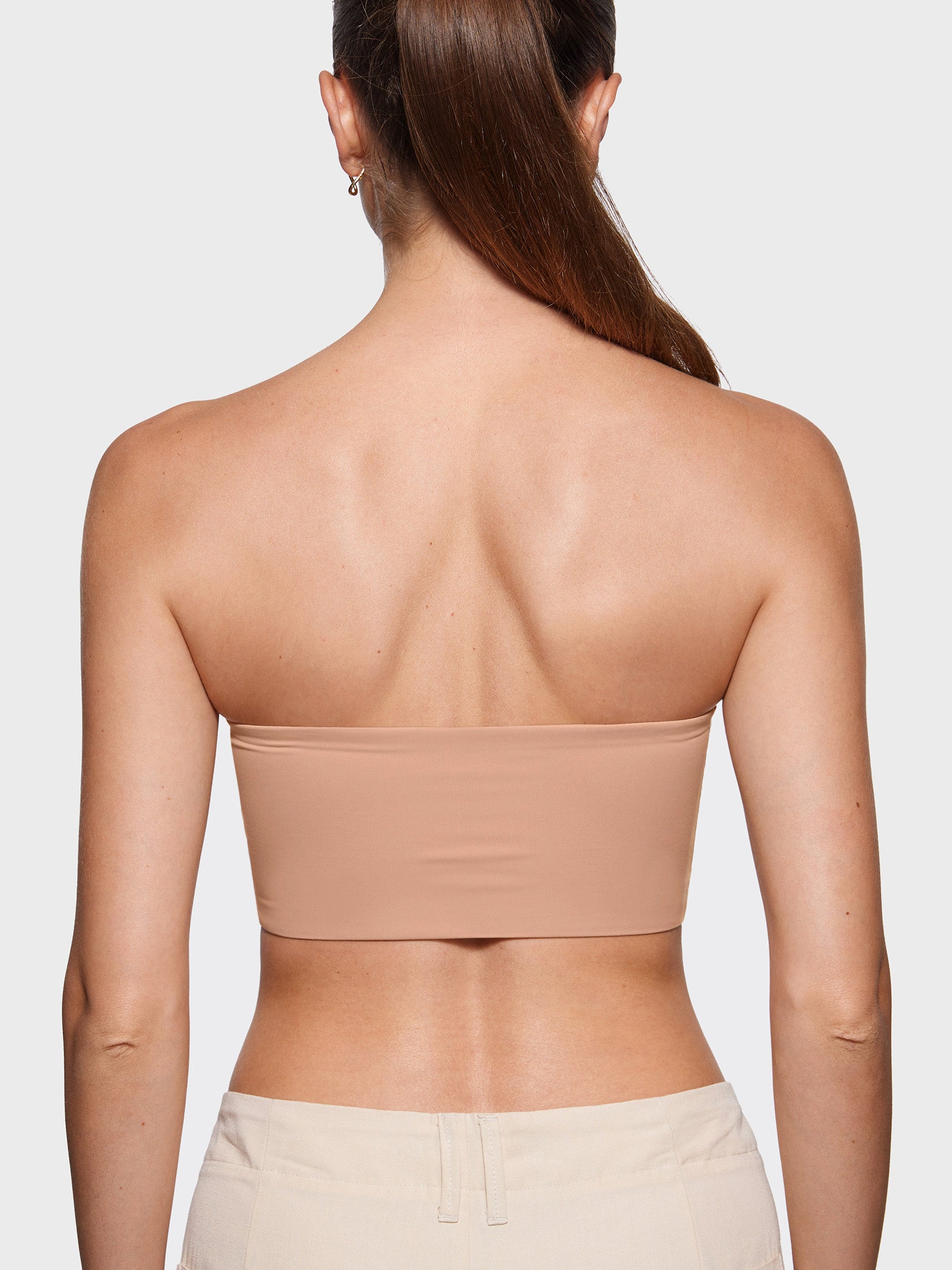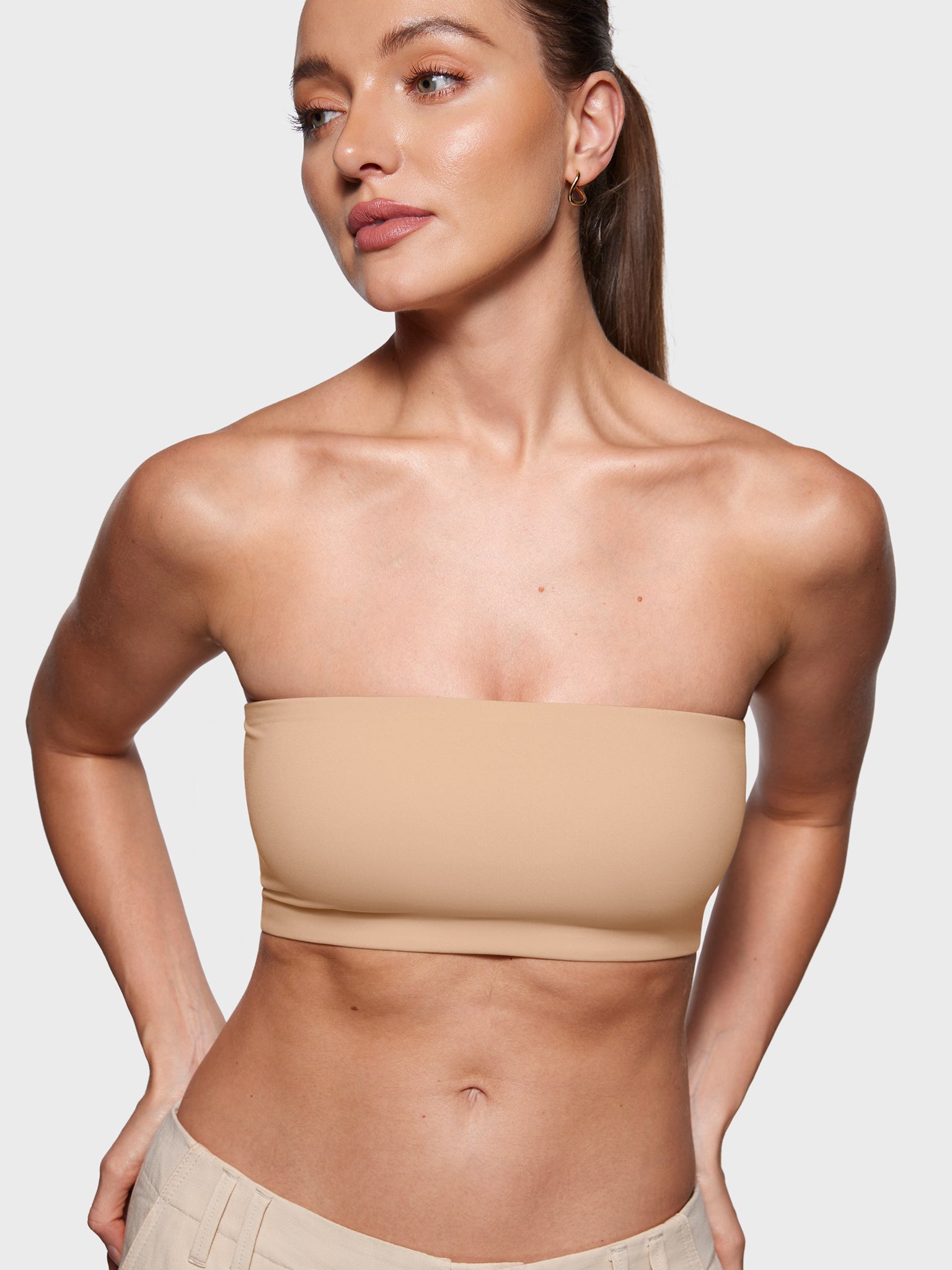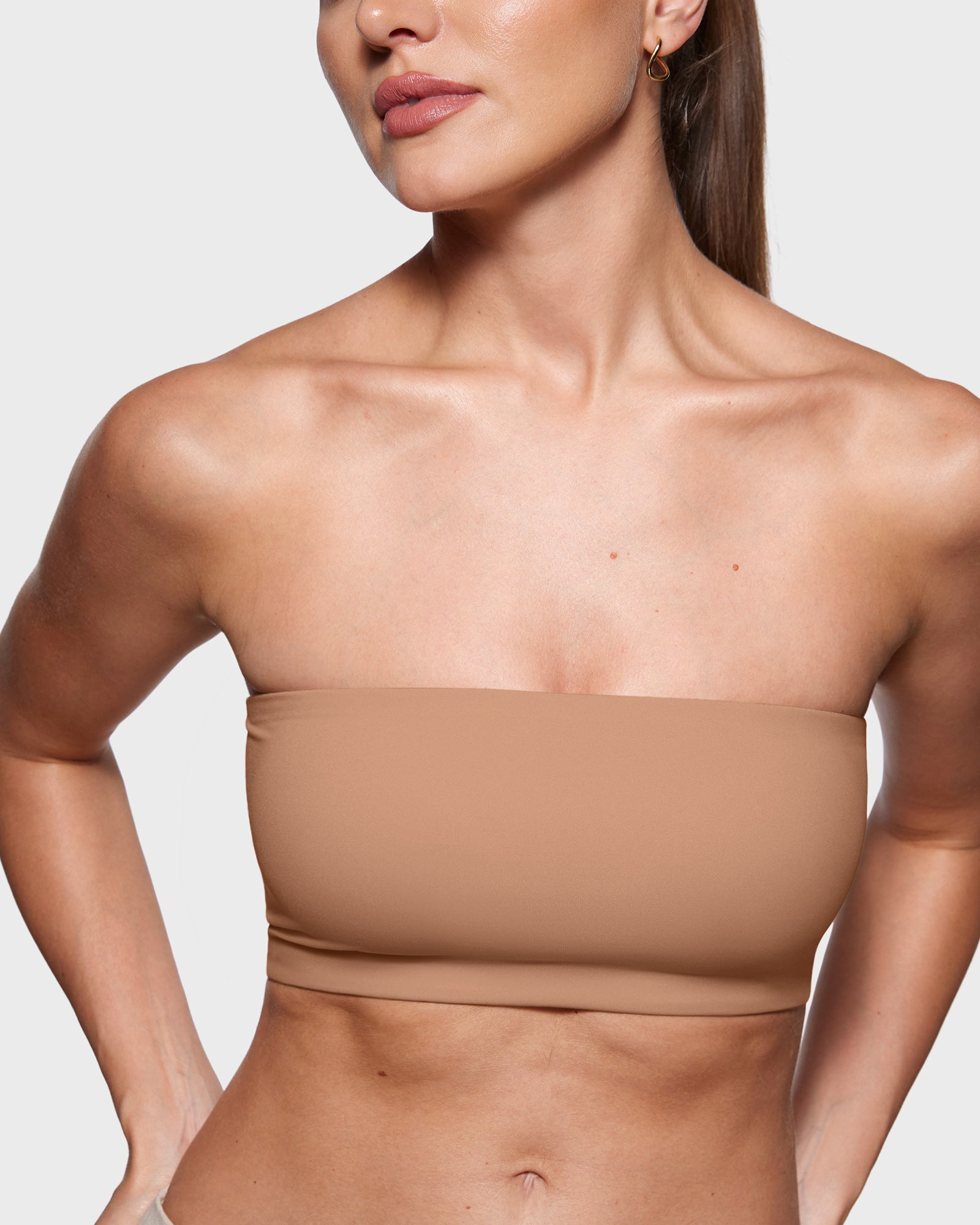 This strapless unlined bras for women is made of three-layered high-stretch fabric that stretch with your body and won't see through,with a mesh layer in the middle designed to provide better support and stability.